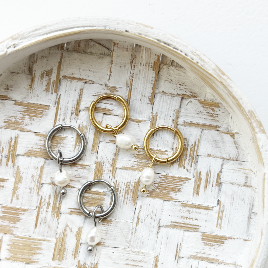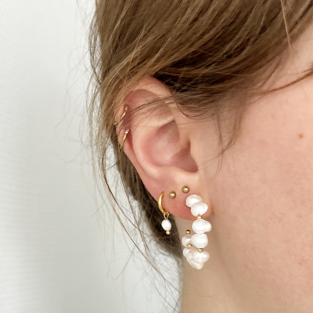 Op zoek naar een klassieke parel oorbel? Zoek dan niet verder! Deze mooie oorringen zijn gemaakt van roestvrij staal en pareltjes, hierdoor zullen de oorbellen niet irriteren of verkleuren. De oorbellen zijn perfect om jouw alledaagse outfit af te maken en om te combineren met andere oorbellen.