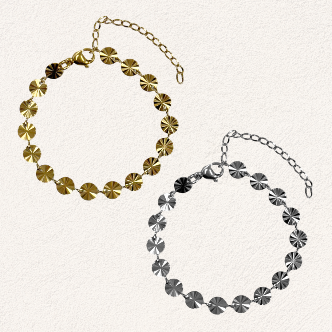 Op zoek naar een mooie daily staple armband? Dan is deze armband misschien wel iets voor jou! De armband is gemaakt van Stainless Steel metaal en bestaat uit een heleboel cirkels met patroontje die aan elkaar vast zijn gemaakt. De armband is 15 cm lang en heeft een verlengstukje van 5 cm. Hierdoor is de armband te dragen van 15 tot 20 cm.
