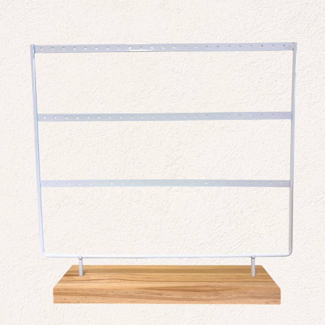 - Je kunt 34 oorbellen setjes kwijt op dit rekje. Het rekje heeft 69 kleine gaatjes om je oorbellen doorheen te hangen.