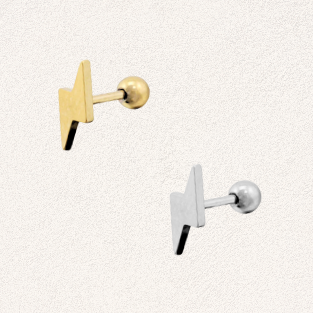 Deze piercing in de vorm van een bliksemschicht is een speels en krachtig detail voor je oor. Het strakke ontwerp geeft een stoer accent, terwijl het compacte formaat ervoor zorgt dat de piercing makkelijk te combineren is met andere piercings.