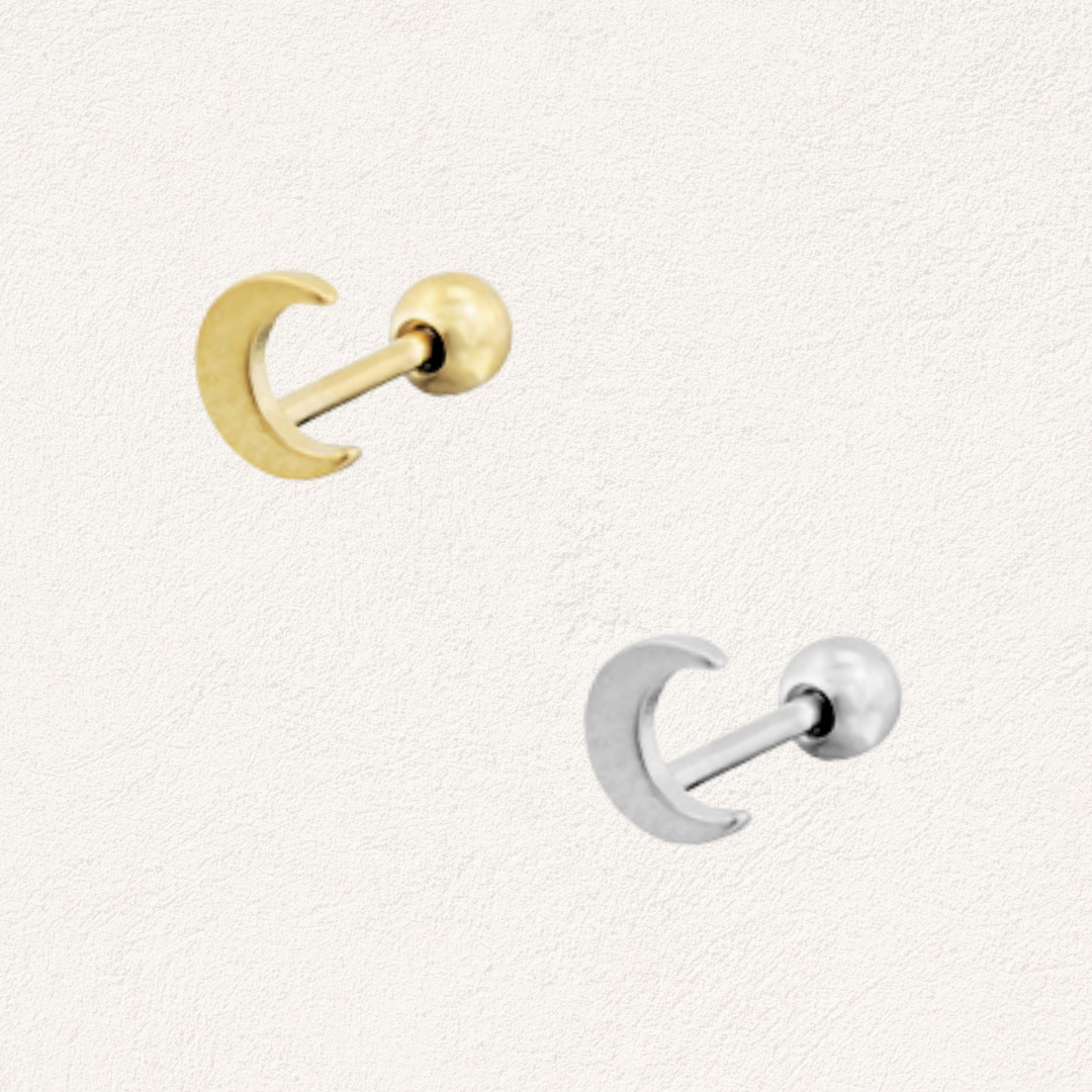 De maan heeft een afmeting van ca. 10,5 x 5 mm en is verkrijgbaar in goudkleur en zilverkleur. Een eenvoudige, stijlvolle piercing die past bij elke look.