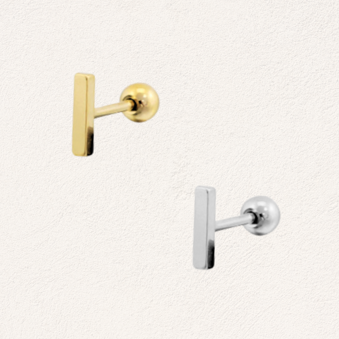 Deze piercing met een strakke, rechthoekige vorm is een minimalistisch en modern detail voor je oor. Het eenvoudige ontwerp zorgt voor een rustige uitstraling en maakt deze piercing perfect om te combineren met andere piercings.
