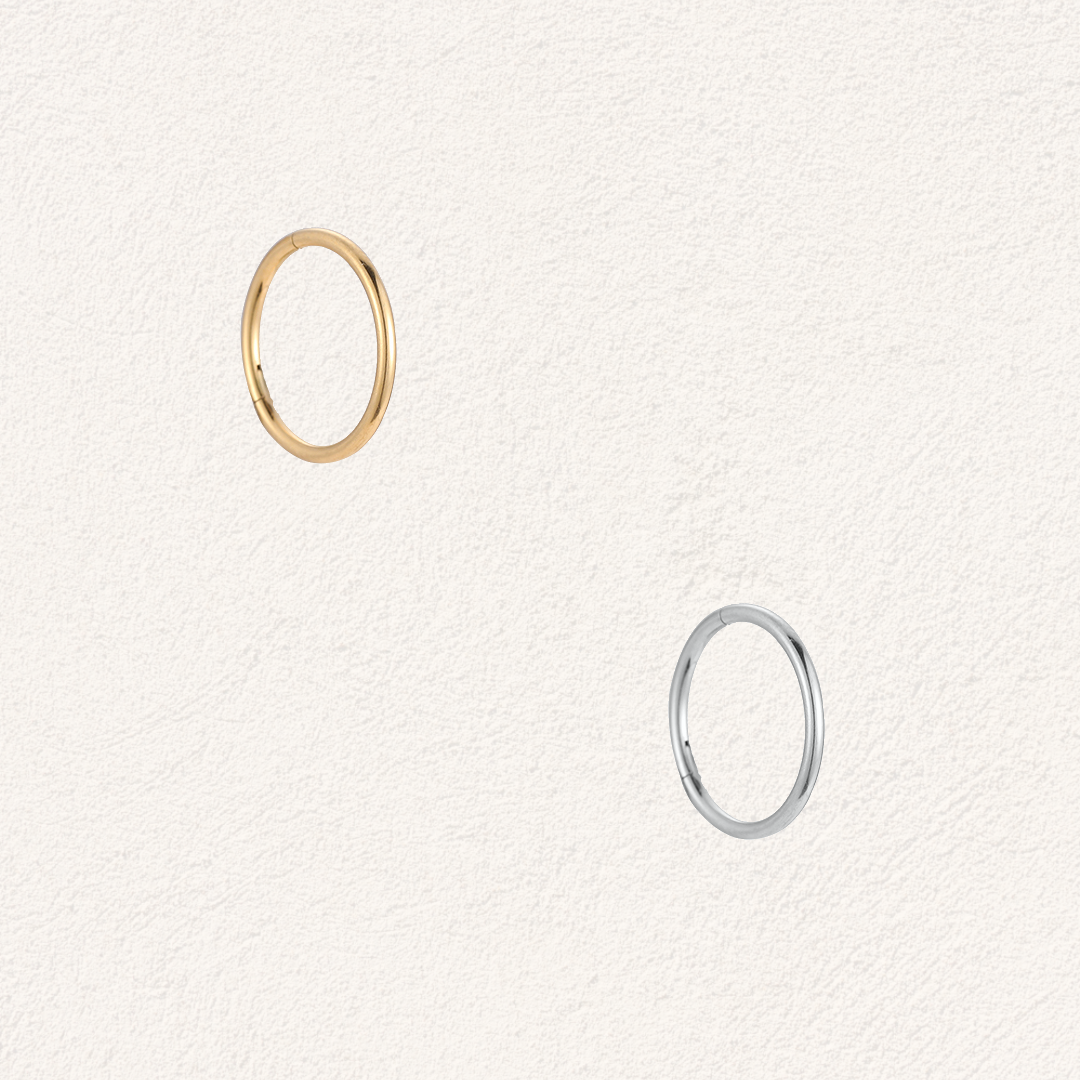 Met een diameter van 8 mm en een dikte van 0,8 mm is dit ringetje ideaal voor wie nét wat meer ruimte of een iets groter formaat fijn vindt. Je kunt hem dragen als piercing of als oorbel, helemaal wat bij jouw look past. Dankzij het makkelijke klikmechanisme doe je hem zonder moeite in en uit.