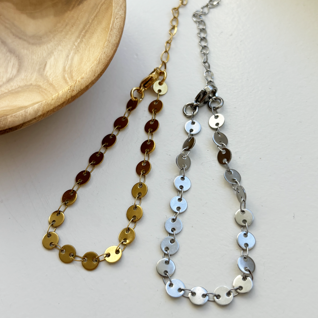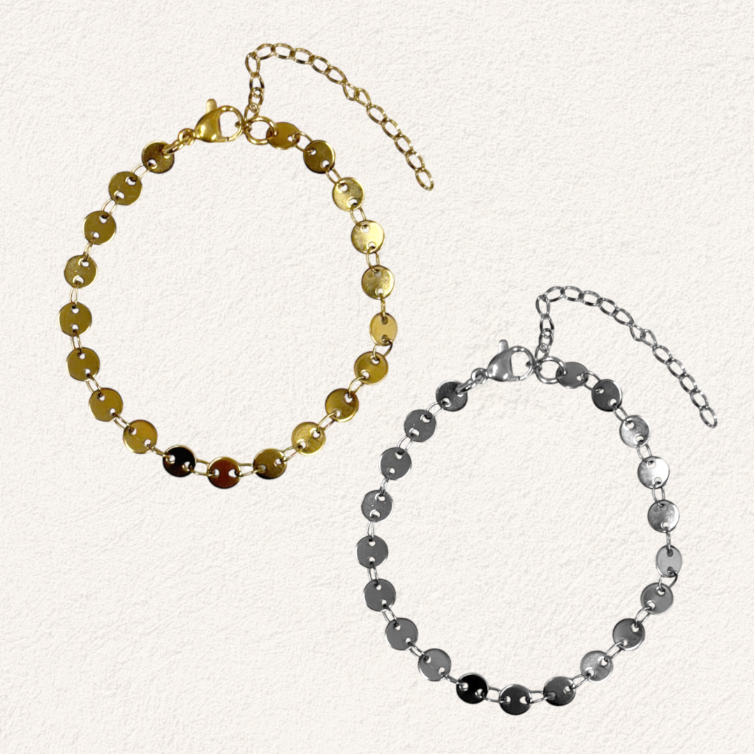 Dit armbandje is gemaakt van stainless steel metaal. Hij is 15 cm lang en heeft een verlengstukje van 5 cm. Hierdoor is de armband te dragen van 15 tot 20 cm. De armband is met de hand gemaakt in Middelburg, Nederland.