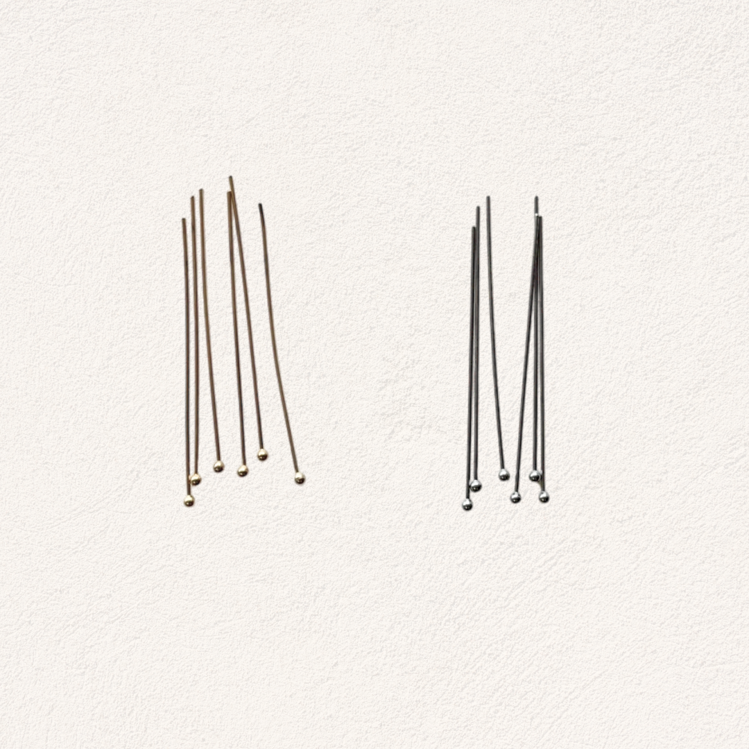 De nietstiften zijn ca. 50 mm lang en 0,7 mm dik, en verkrijgbaar in goud- en zilverkleur. Perfect voor het bevestigen van kralen of bedeltjes aan oorbelhaakjes, kettinkjes of armbanden.