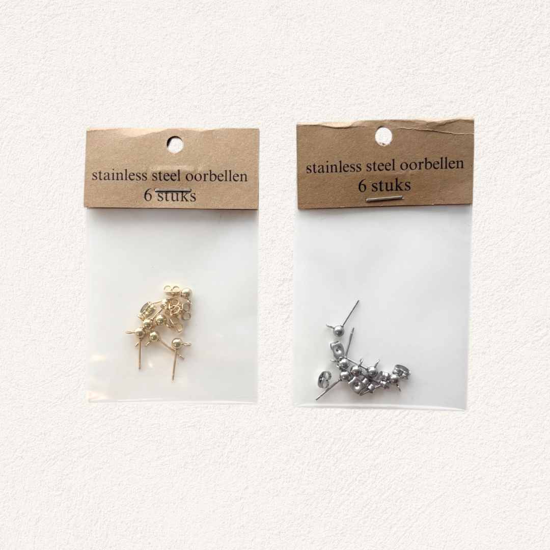 stainless steel oorbelbasis goud en zilver (6 stuks)