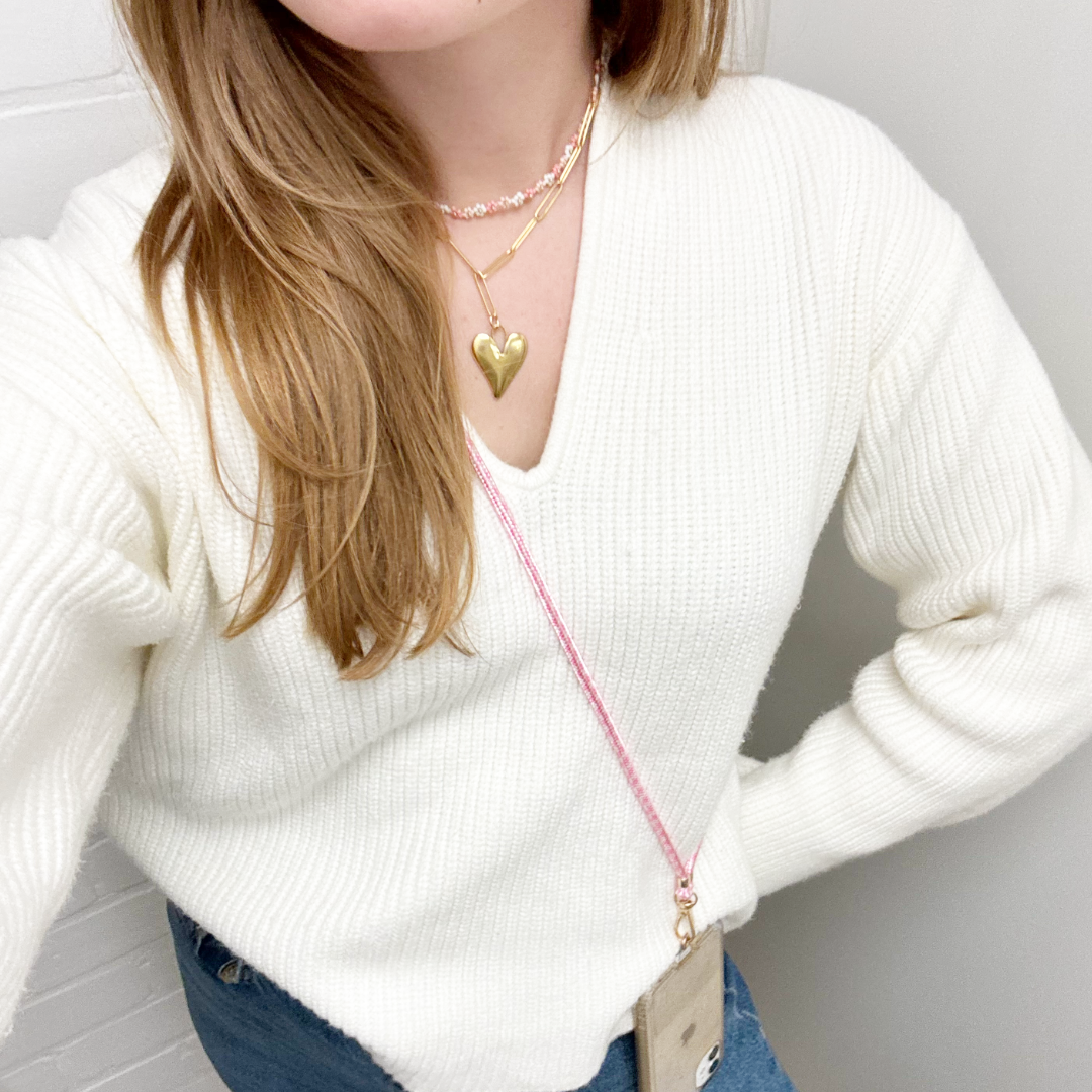 Maak je outfit helemaal af met onze toffe telefoonkoorden! Dit toffe koord kun je gemakkelijk verstellen. Voor dit telefoonkoord heb je geen speciaal hoesje nodig, er zit namelijk een plastic lanyard pad bij die je in je eigen hoesje kan stoppen. Ga voor trendy, ga voor parels!