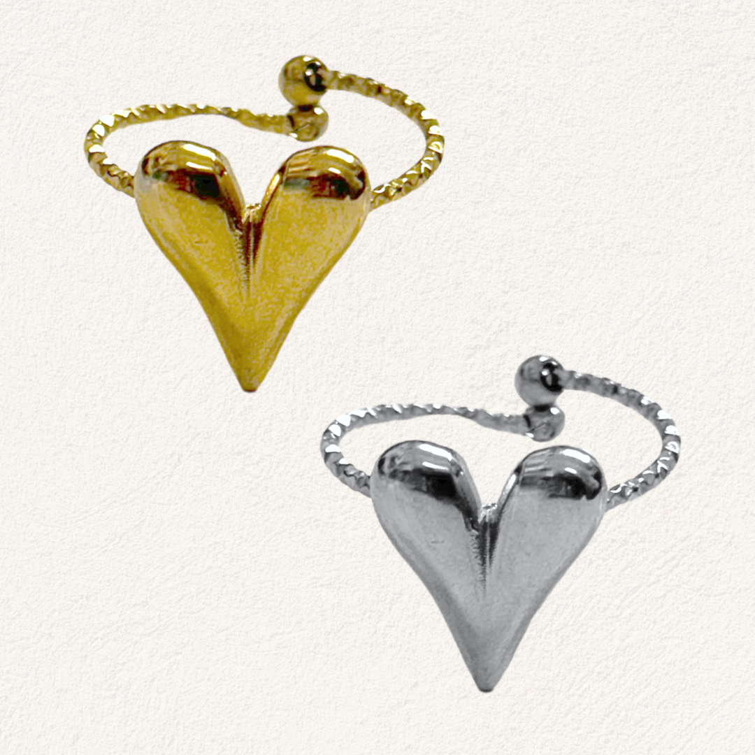 Een subtiele eyecatcher vol liefde. Deze hart ring heeft een speels en modern ontwerp met een verfijnde, gedraaide band en een opvallend 3D-hart. Dankzij het open en verstelbare ontwerp past de ring om elke vinger, zodat je hem kunt dragen zoals jij wilt.